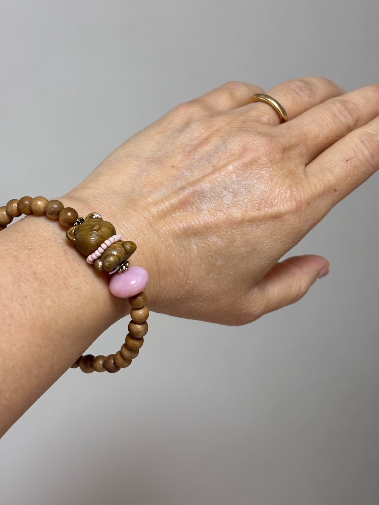 沈香 白檀 香木 ピンクオパール オパール クマ デザインブレスレット
