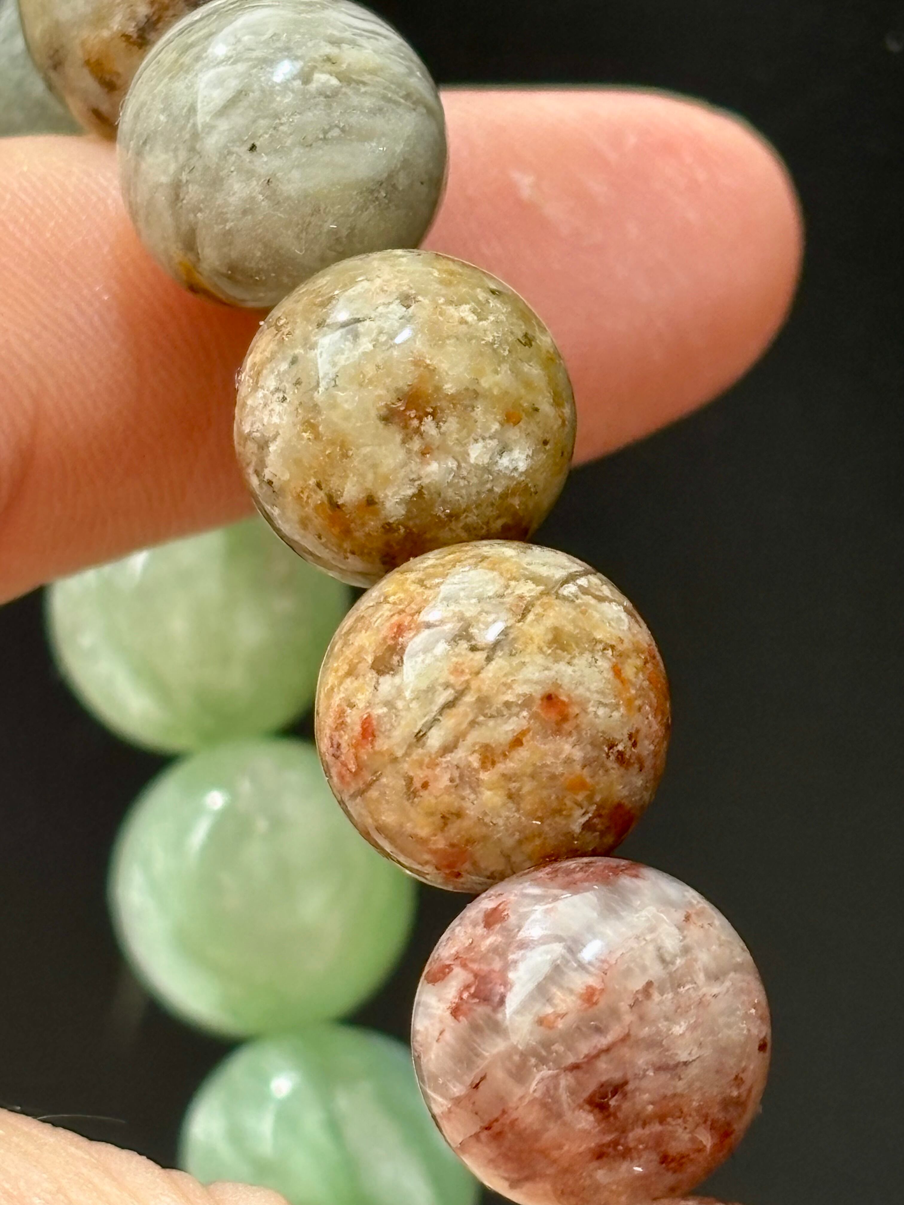 ミントグリーンマイカとブラウン系の千層ガーデンのデザインブレスレット。