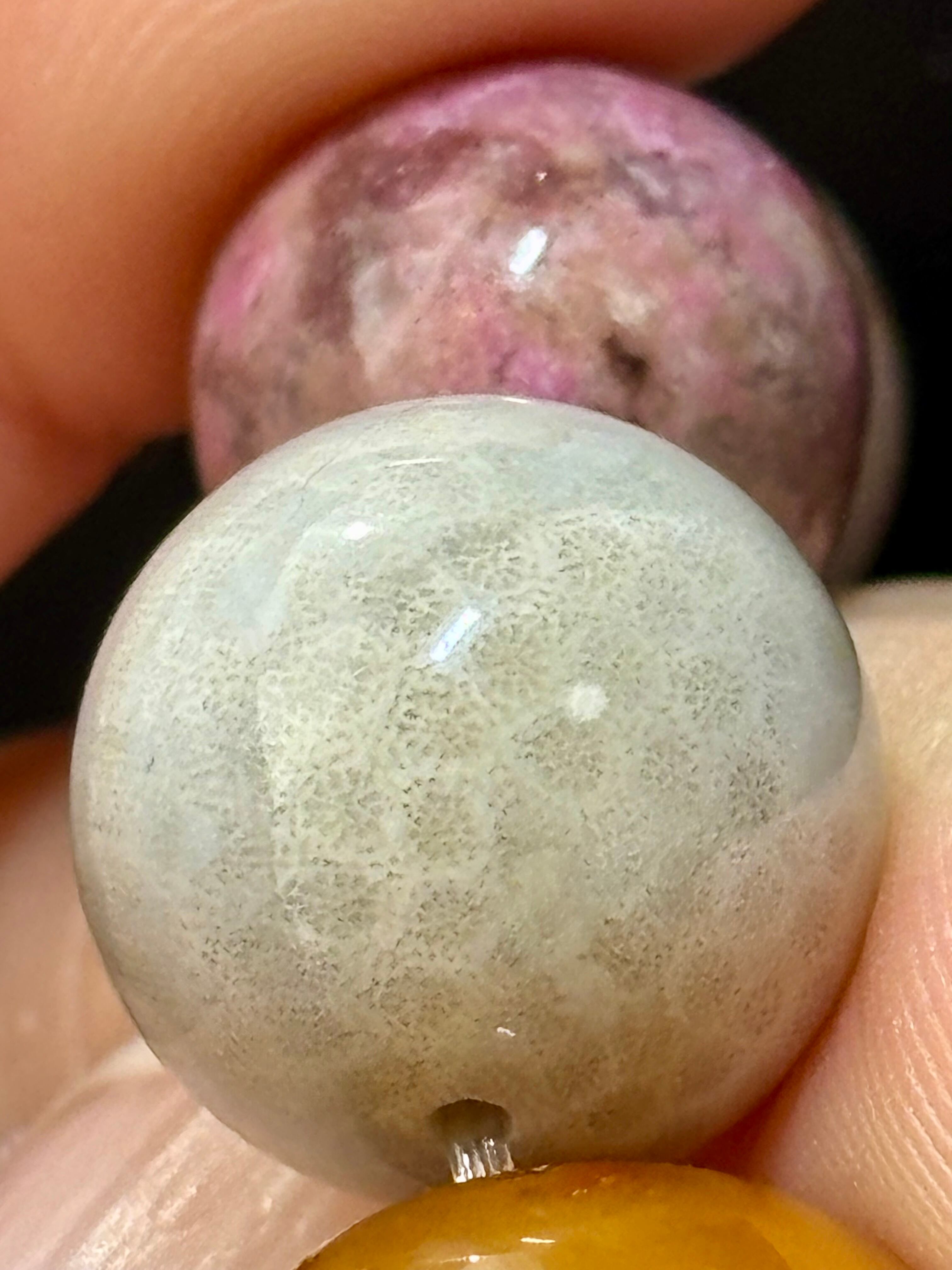 パープルマイカには、6条スターが確認出来ます。フォッシルコーラルも小さなお花が沢山