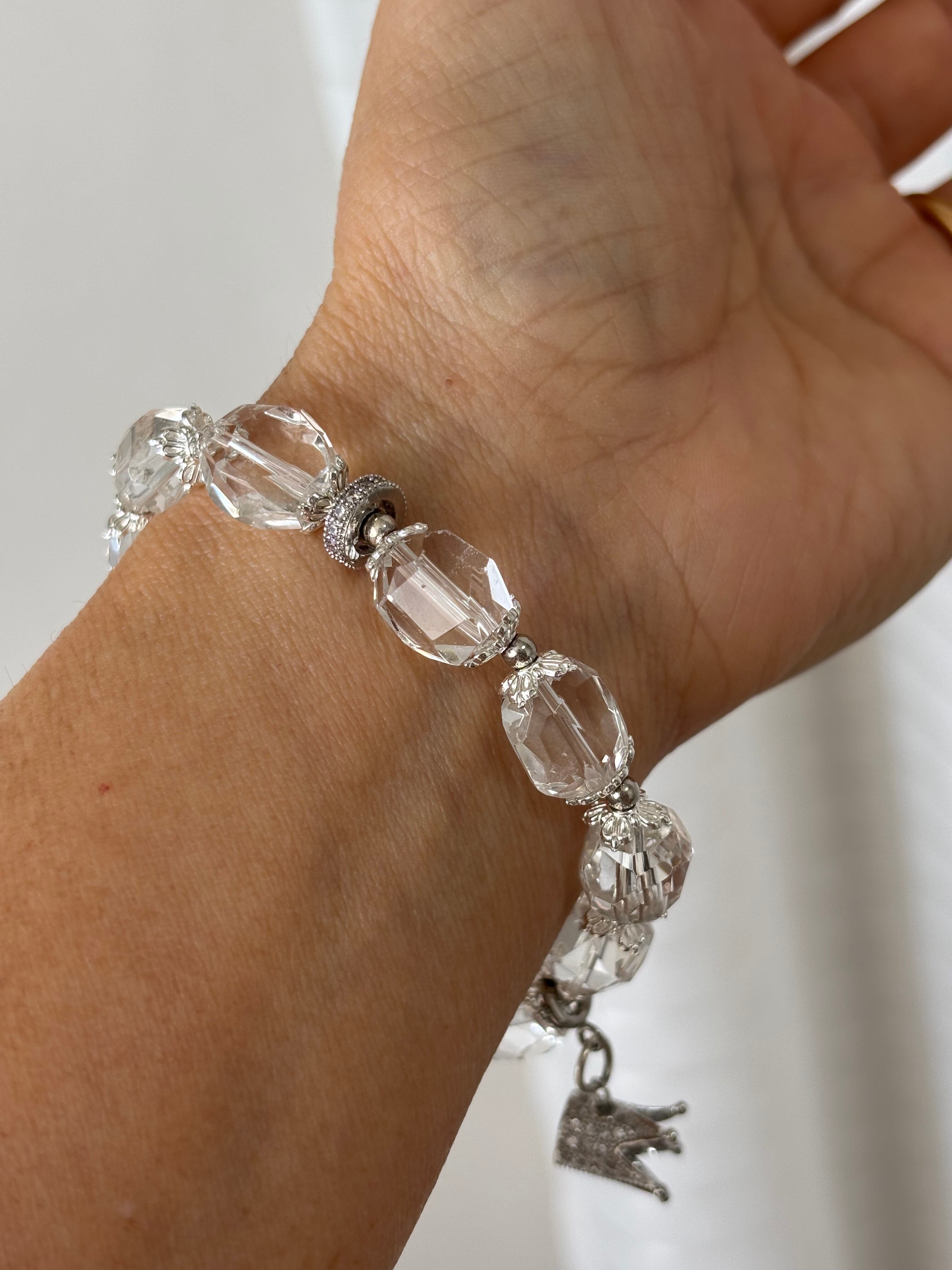 高品質タンブル型キラキラ水晶のデザインブレスレット。シルバーバージョン。