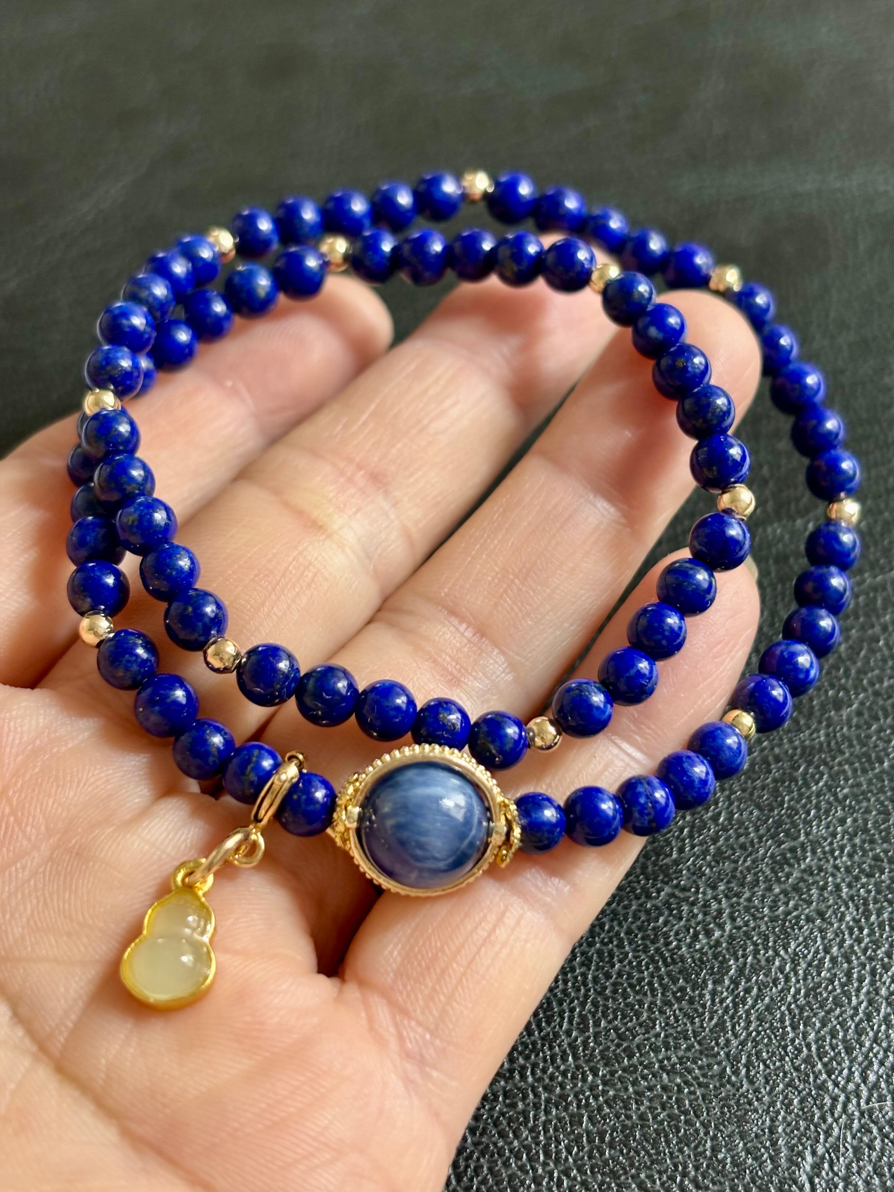 天然色ラピスラズリにカイヤナイトをトップにした2連デザインブレスレット。