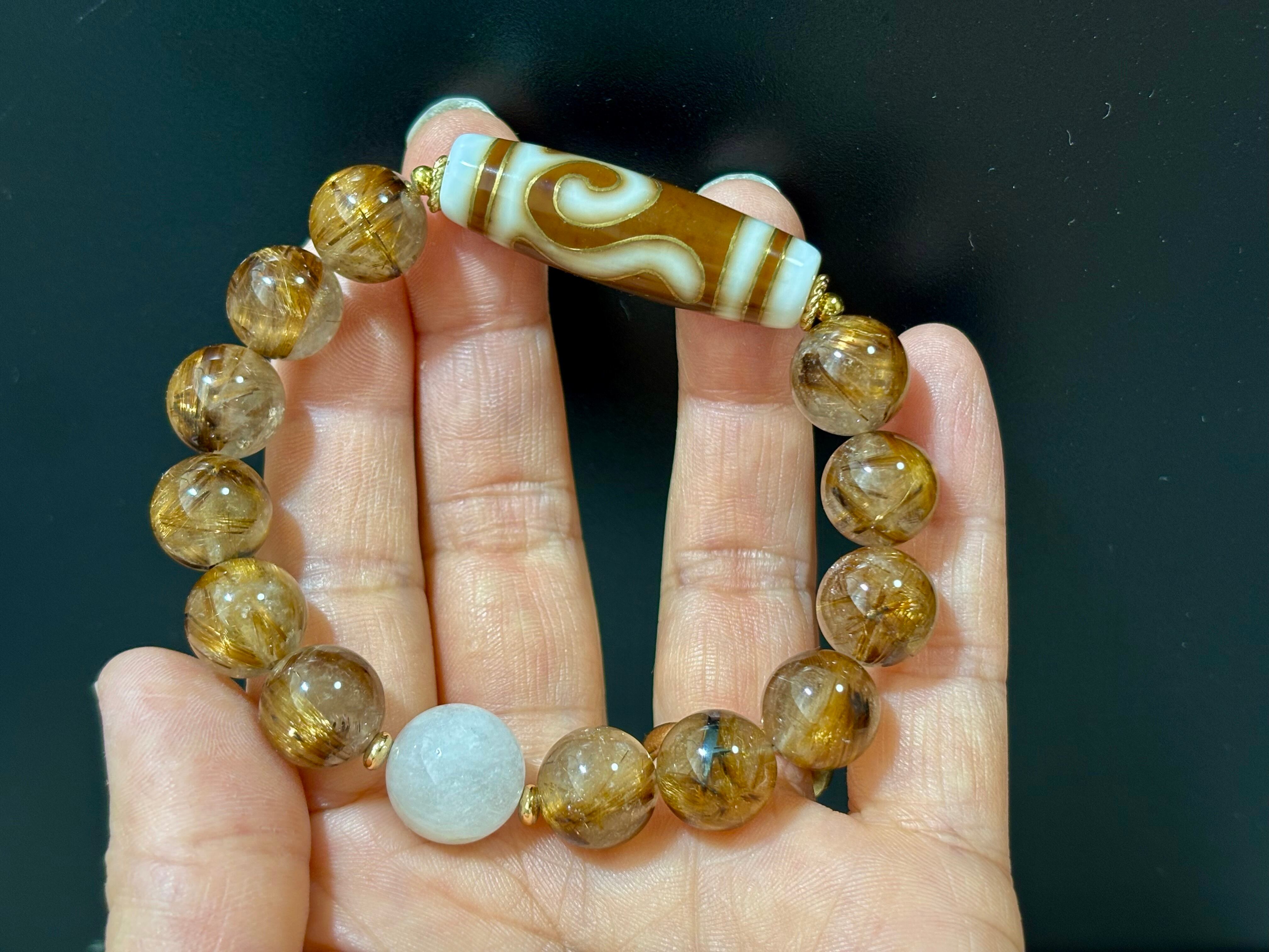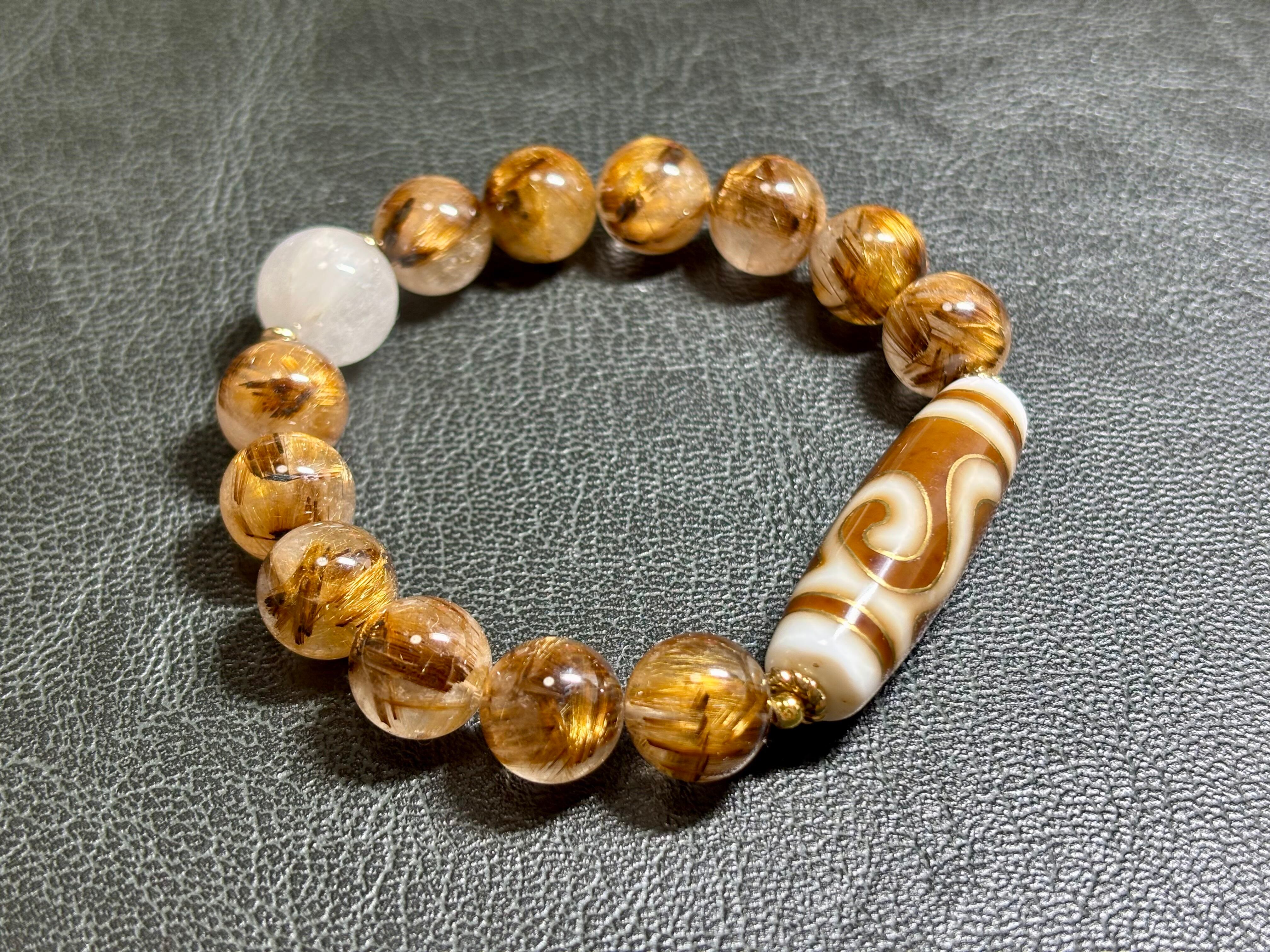 高品質プレミアム白金線天珠と、11ミリアップのタイチンルチルを贅沢に使ったデザインブレスレット。