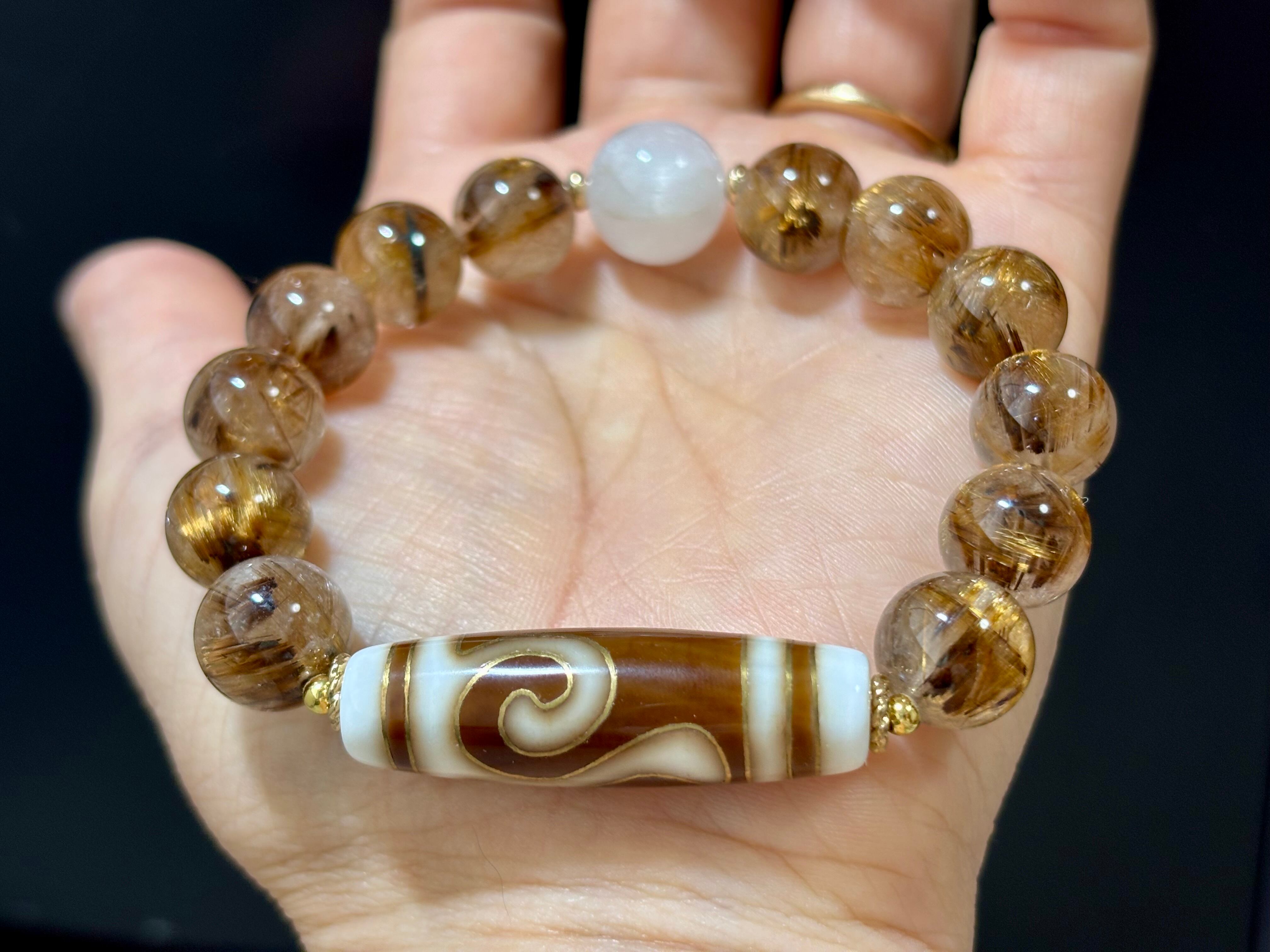 高品質 白金線天珠 天珠 ルチル サゲニティックデザインブレスレット