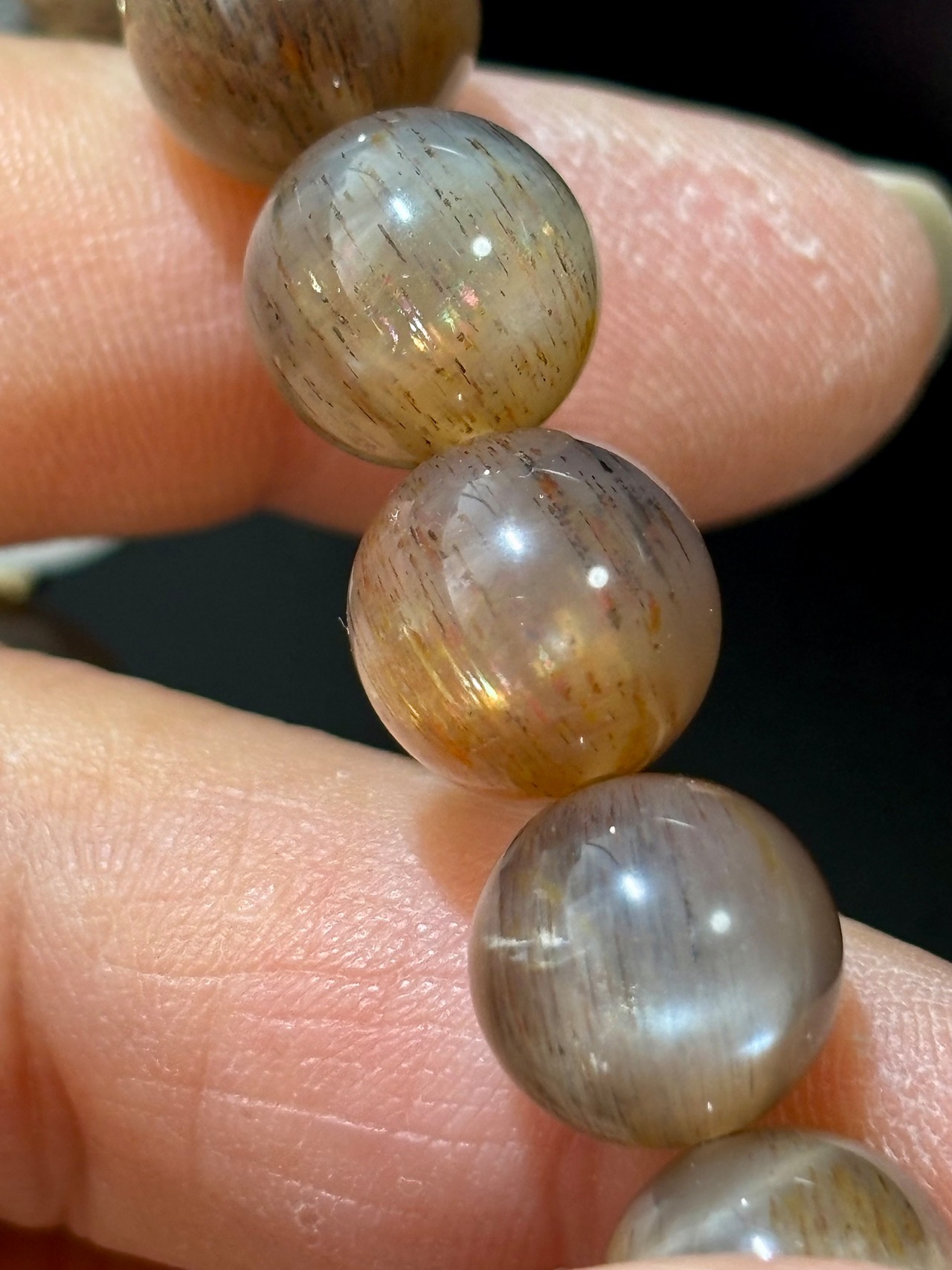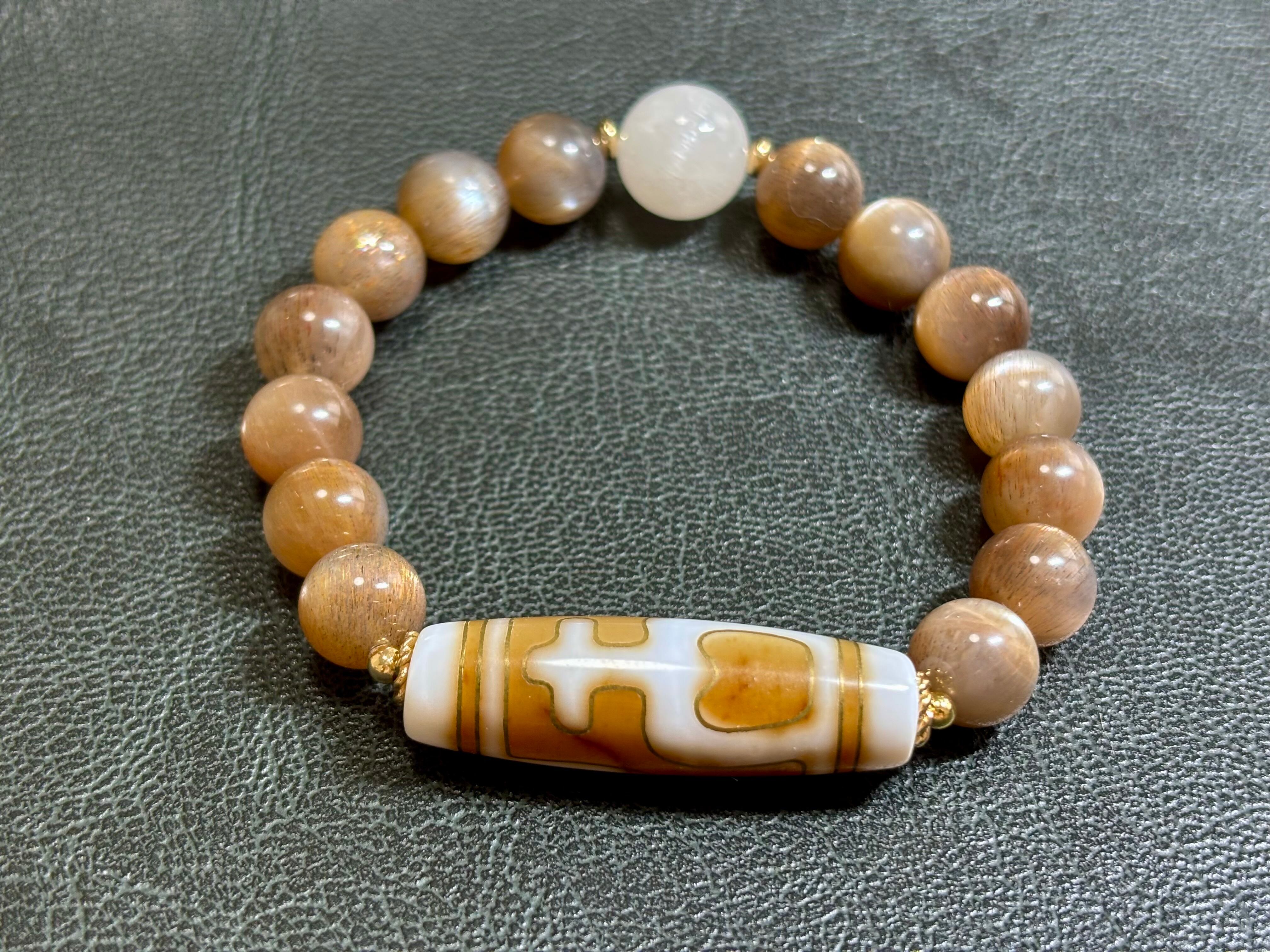 高品質プレミアム白金線天珠と、シラーが美しいブラックサンムーンストーンデザインブレスレット。