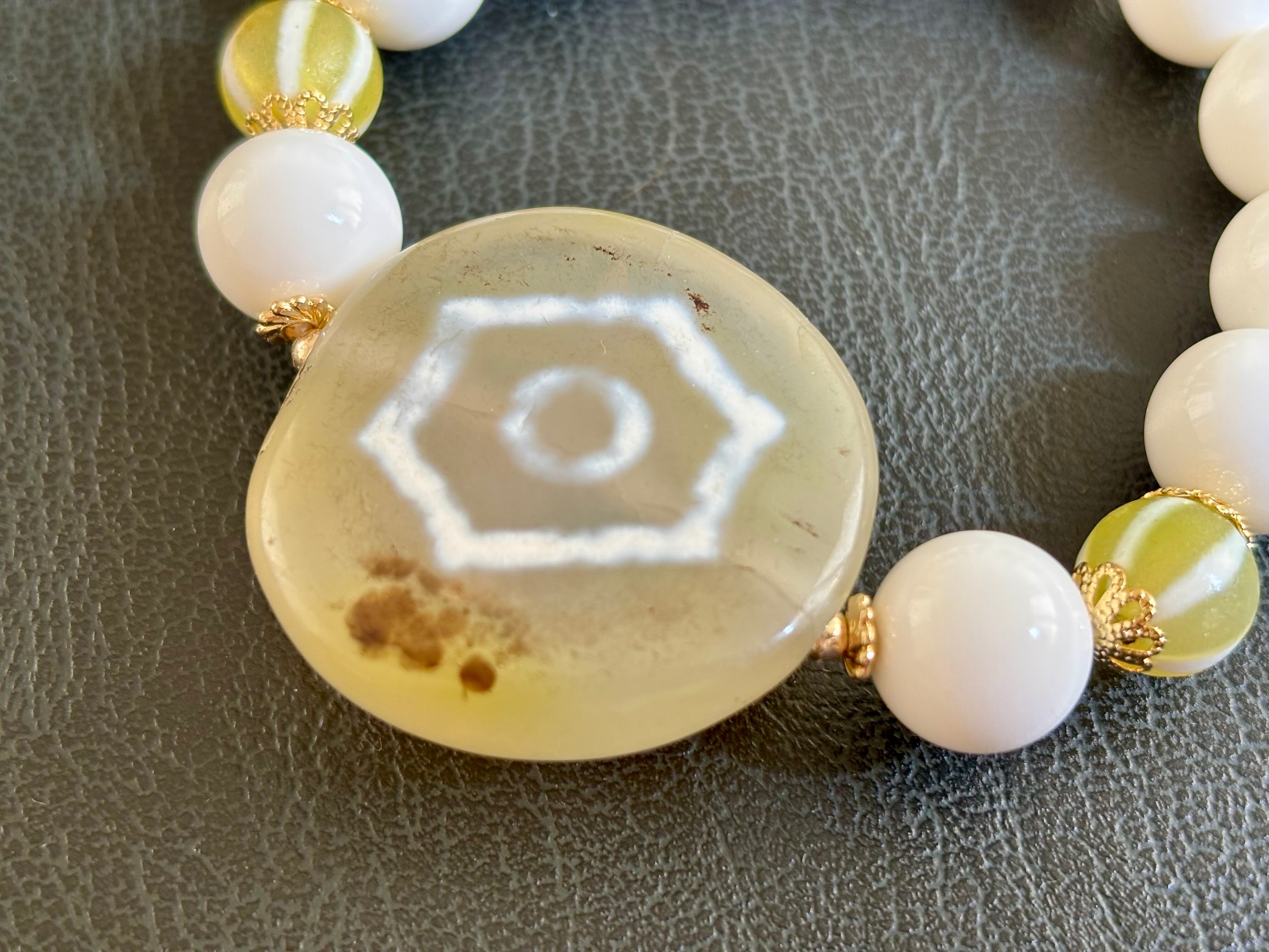チベット産古瑪瑙の羊眼天珠に宝瓶天珠が入った最強お守りデザインブレスレット。