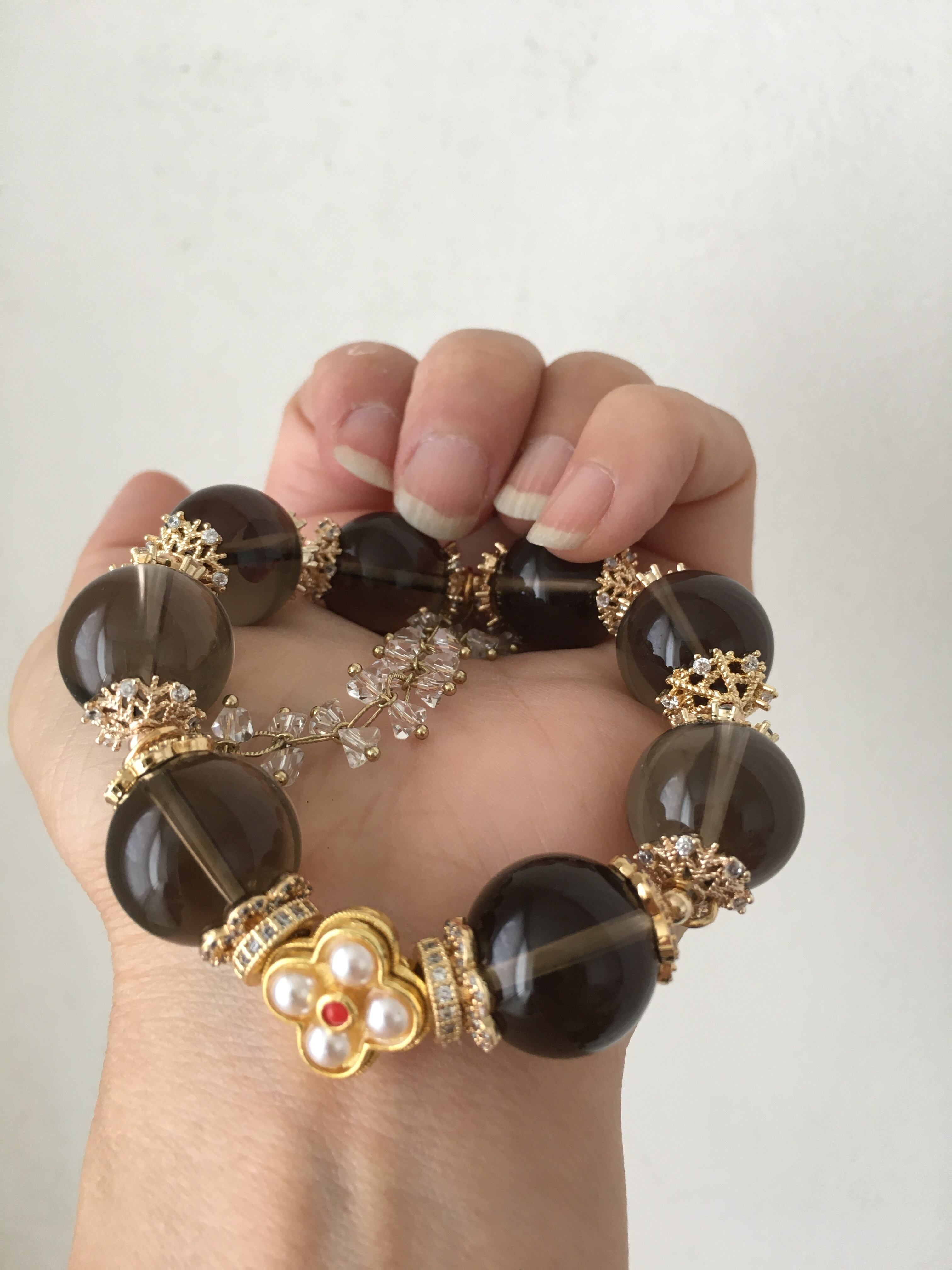 スモーキークォーツ 大玉 パール フラワー デザインブレスレット