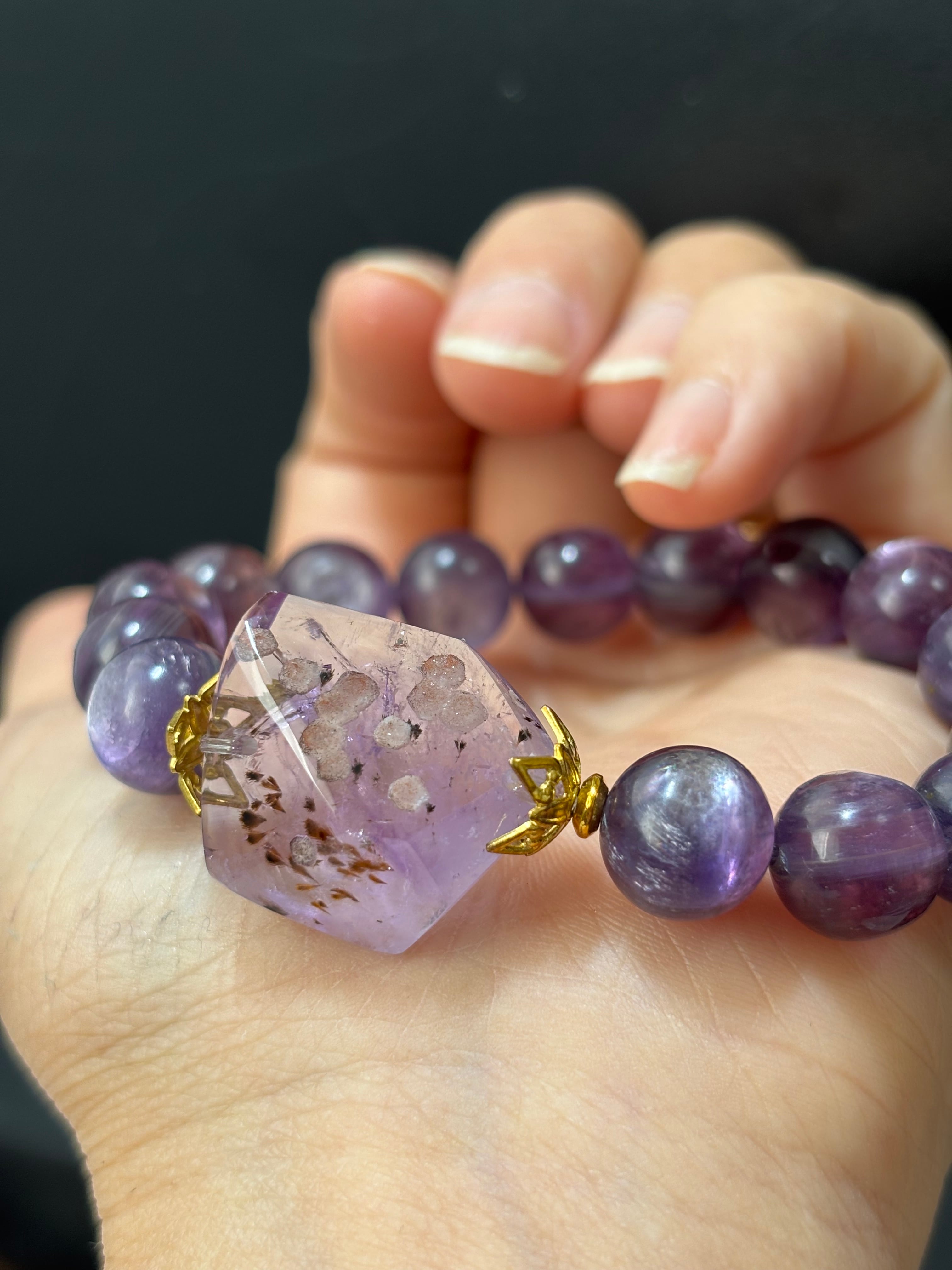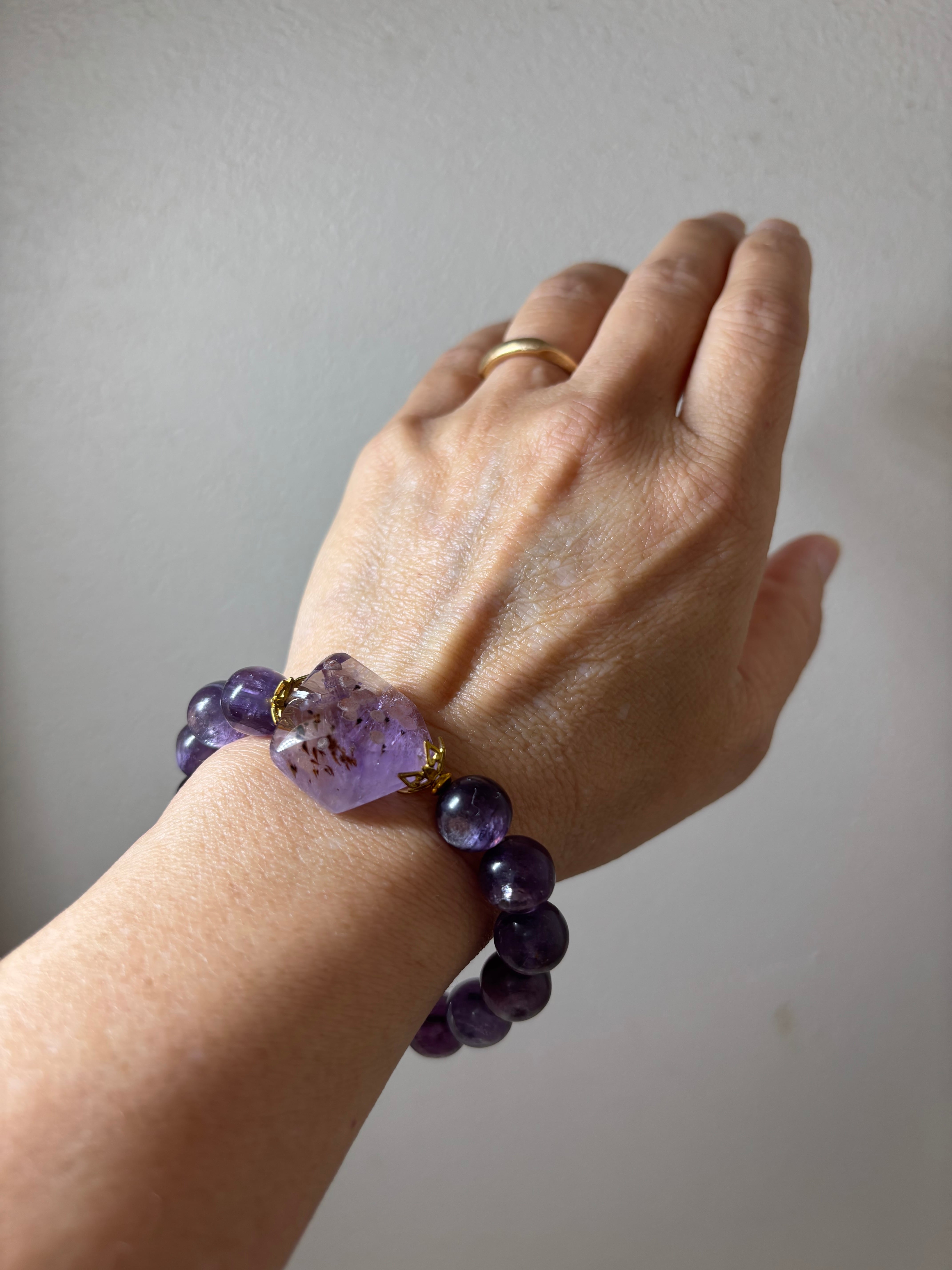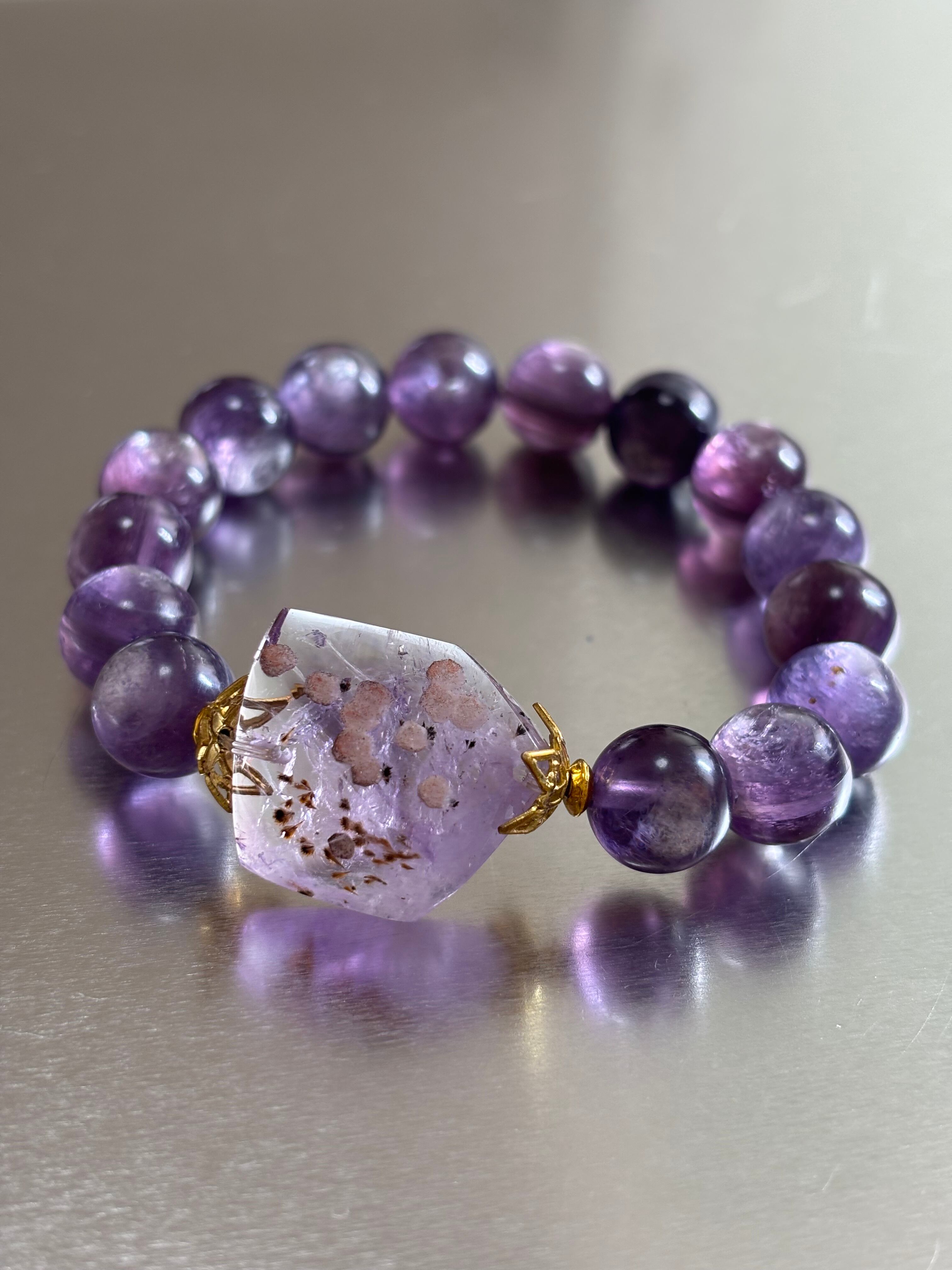 アメジスト インカコクセナイト インカルサイトインクォーツブレスレット。