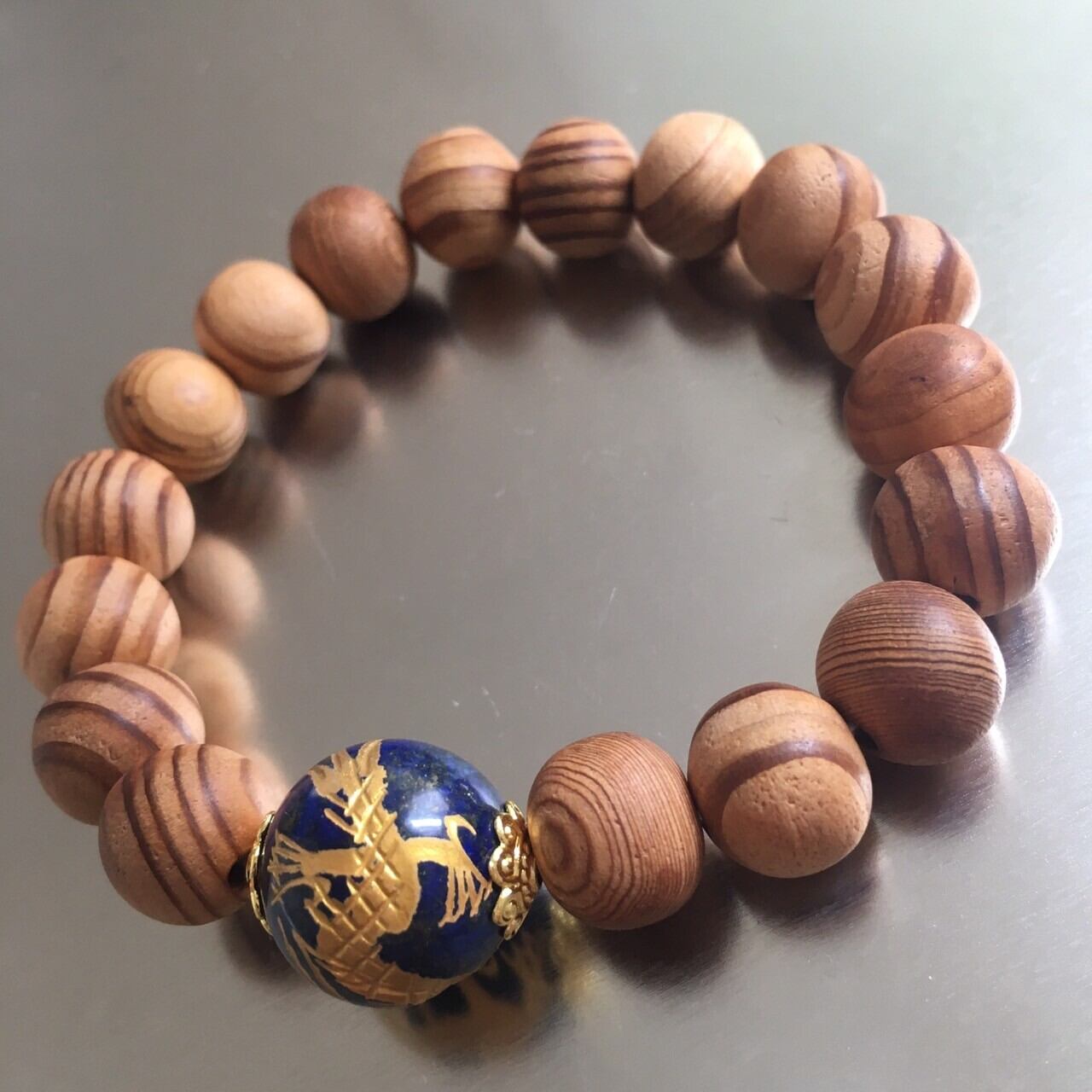 屋久杉 ラピスラズリ 龍彫り デザインブレスレット