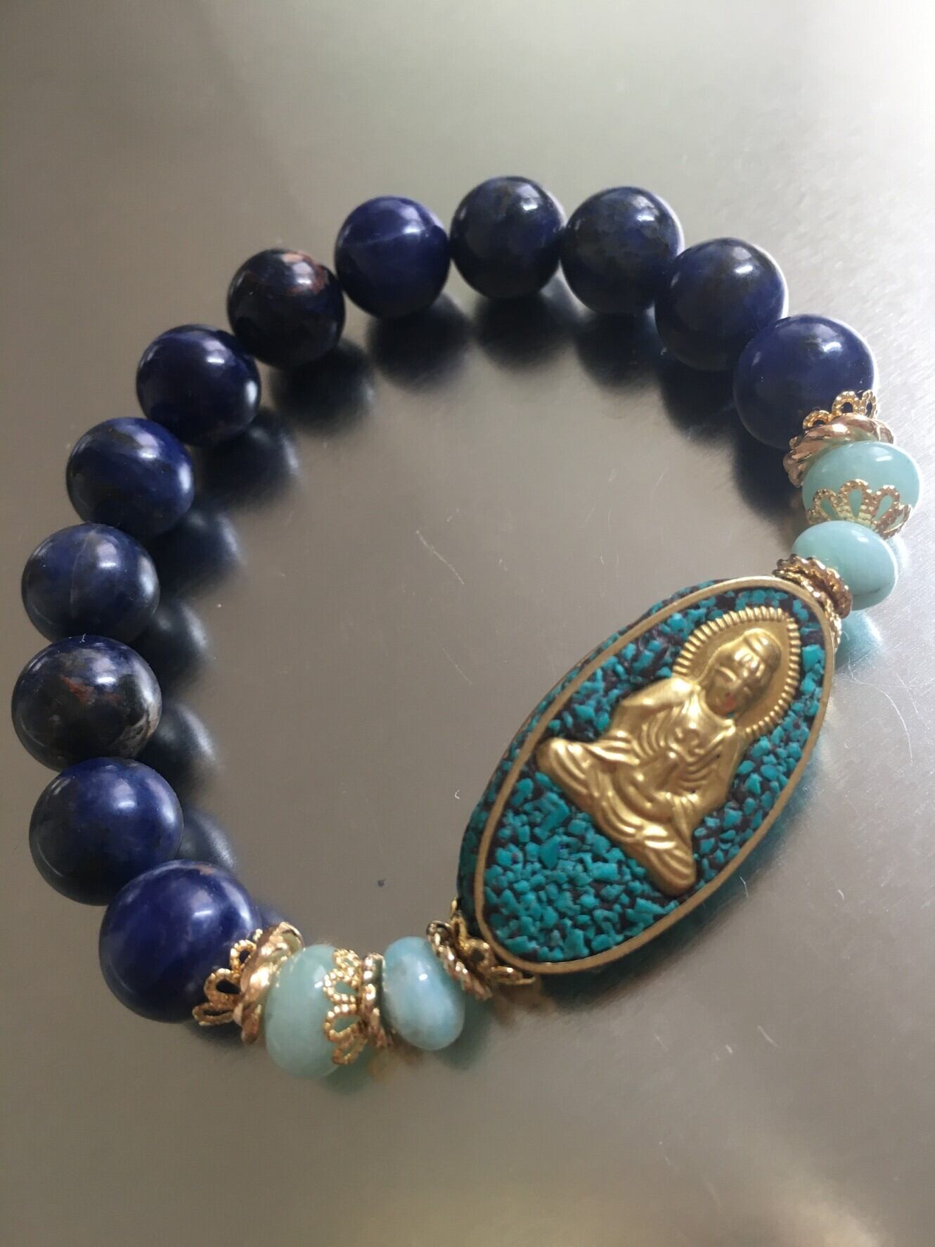 ブッダ ソーダライト アマゾナイト チベットビーズ デザインブレスレット