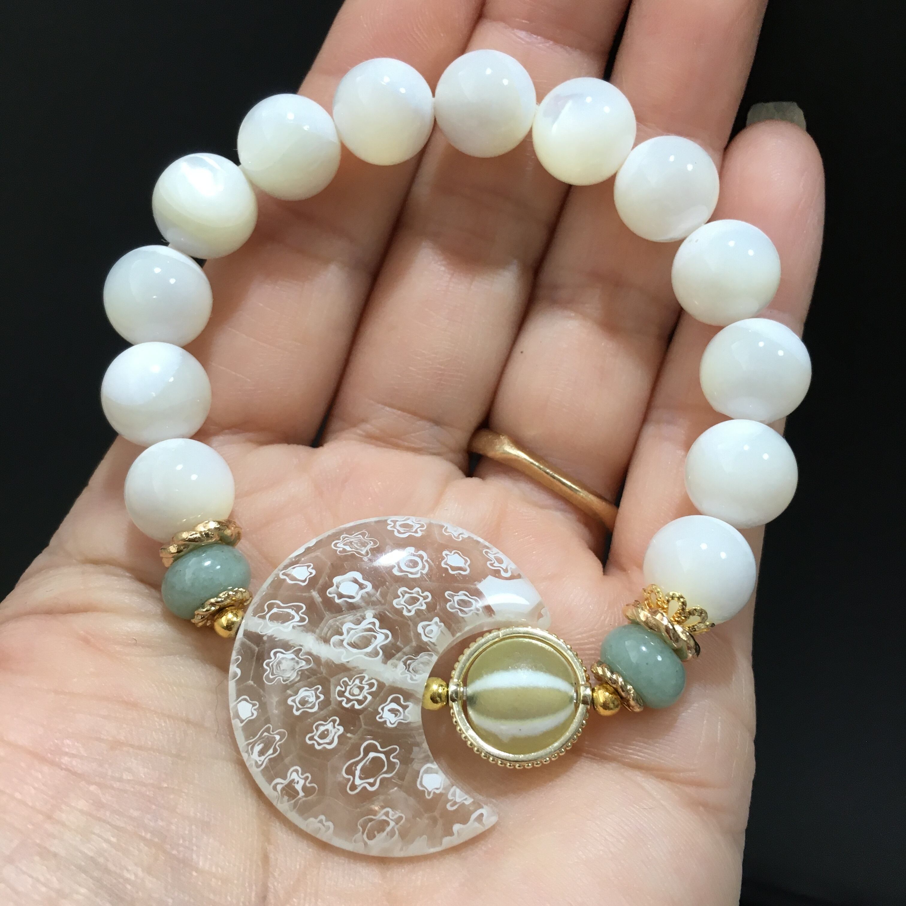 マザーオブパールと瑪瑙のお月様のデザインブレスレット。