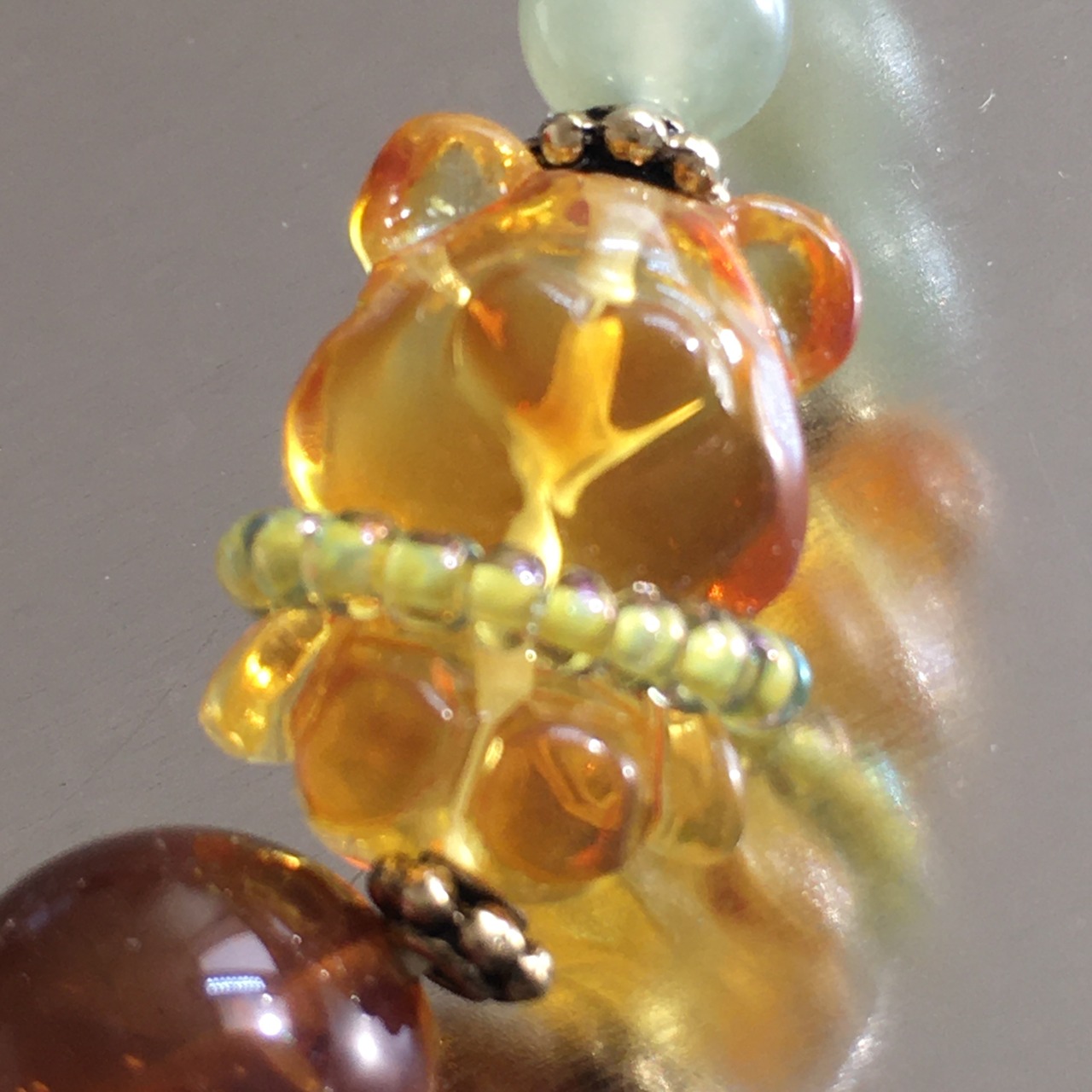 ブラウンと黄色の綺麗な琥珀は、黄色とブラウンが少し入ったクマさんと色を合わせました。