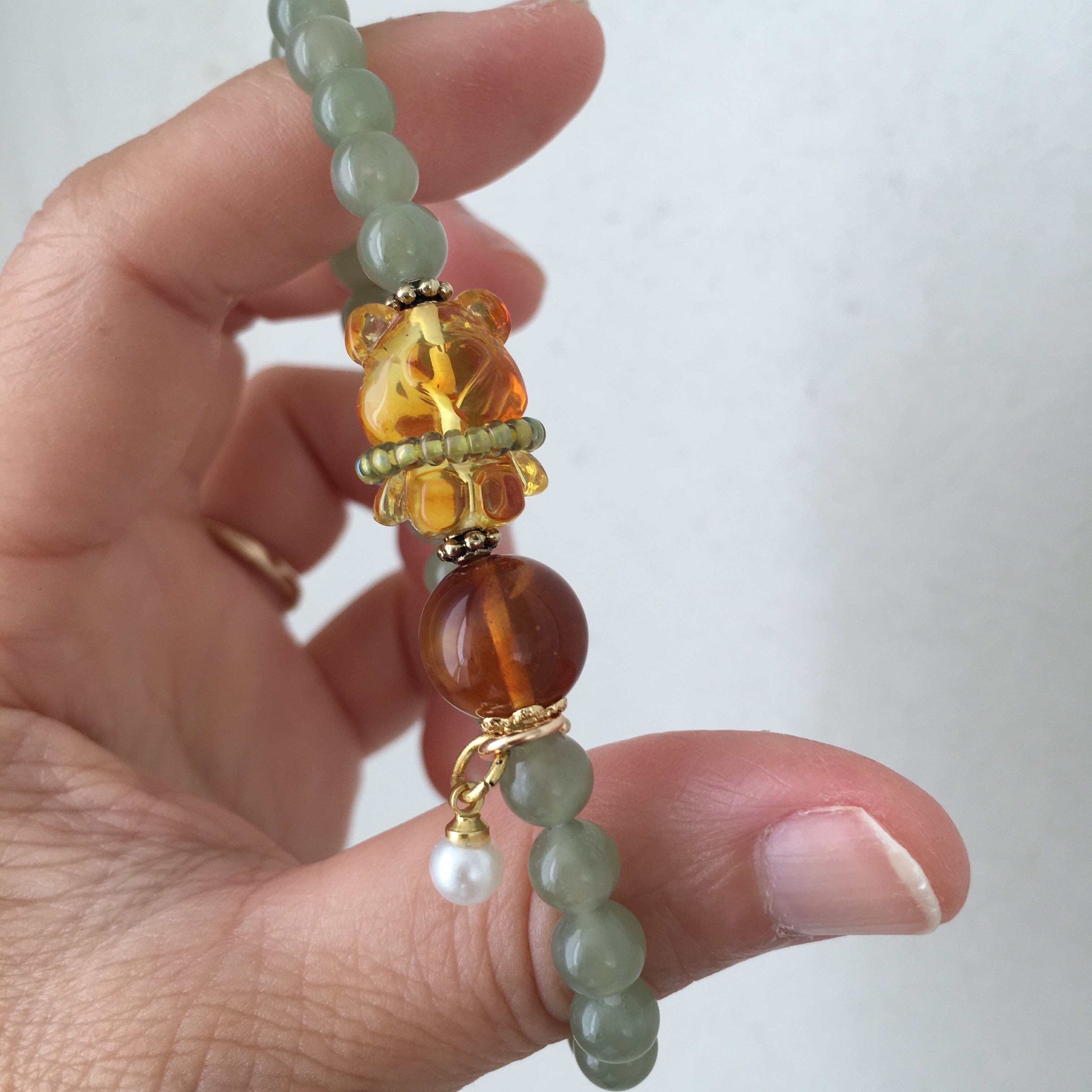 翡翠 ホータン翡翠 和田翡翠 琥珀 アンバー ヒスイ クマ デザインブレスレット