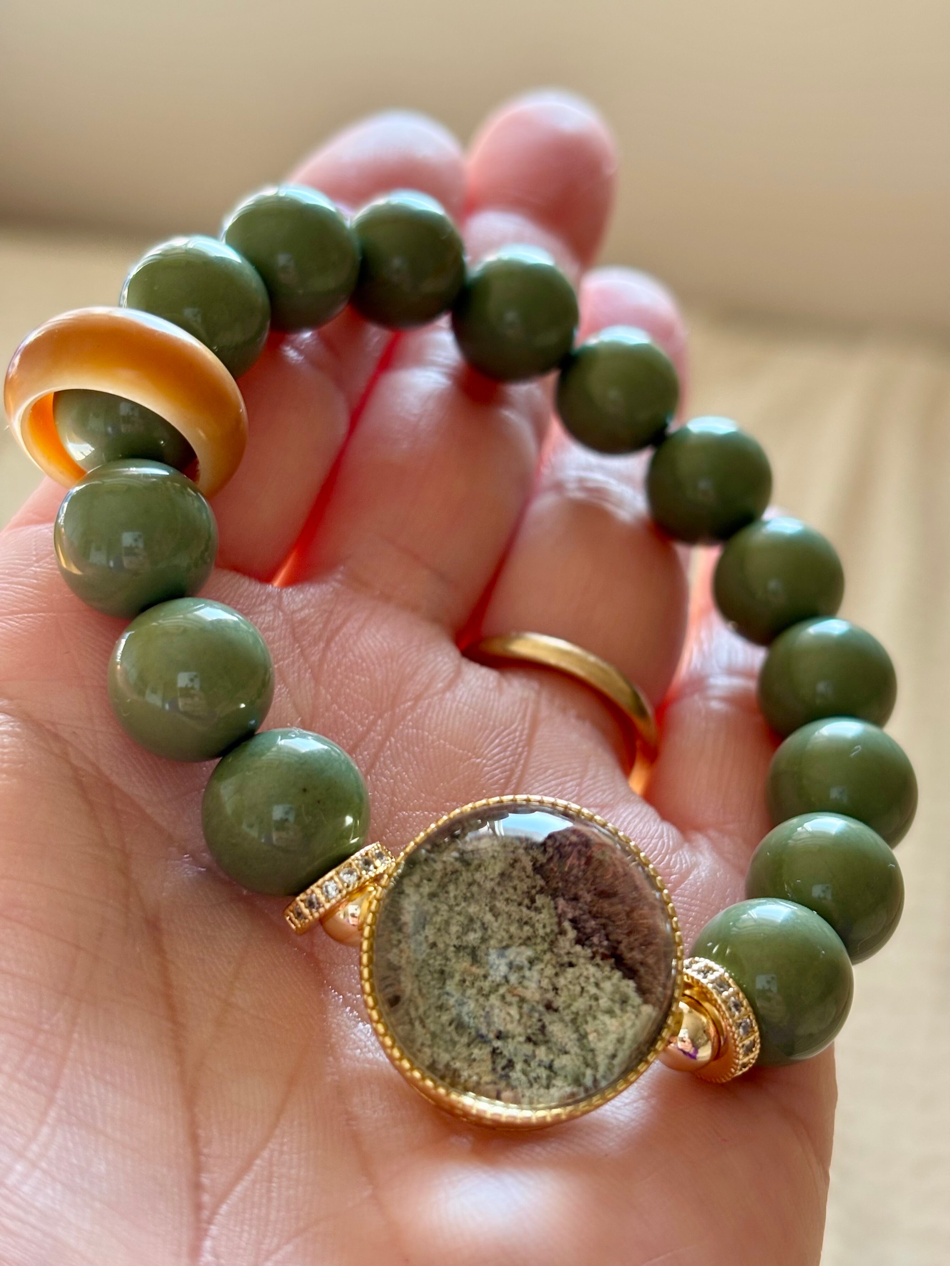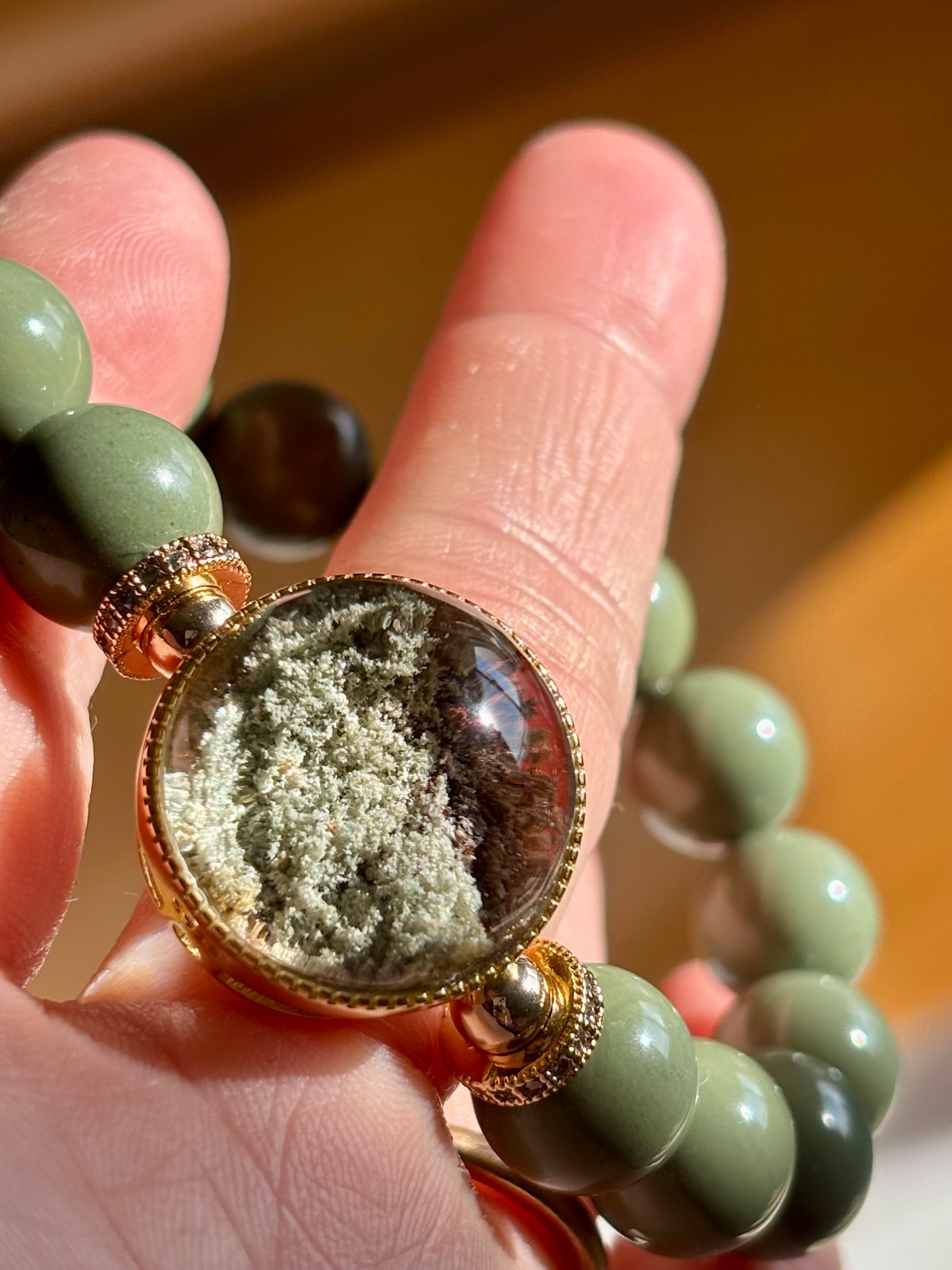 よく見ると、グリーンからブラウンへのグラデーションになっていて、少し入った黄色が小さなお花みたいに見えます。