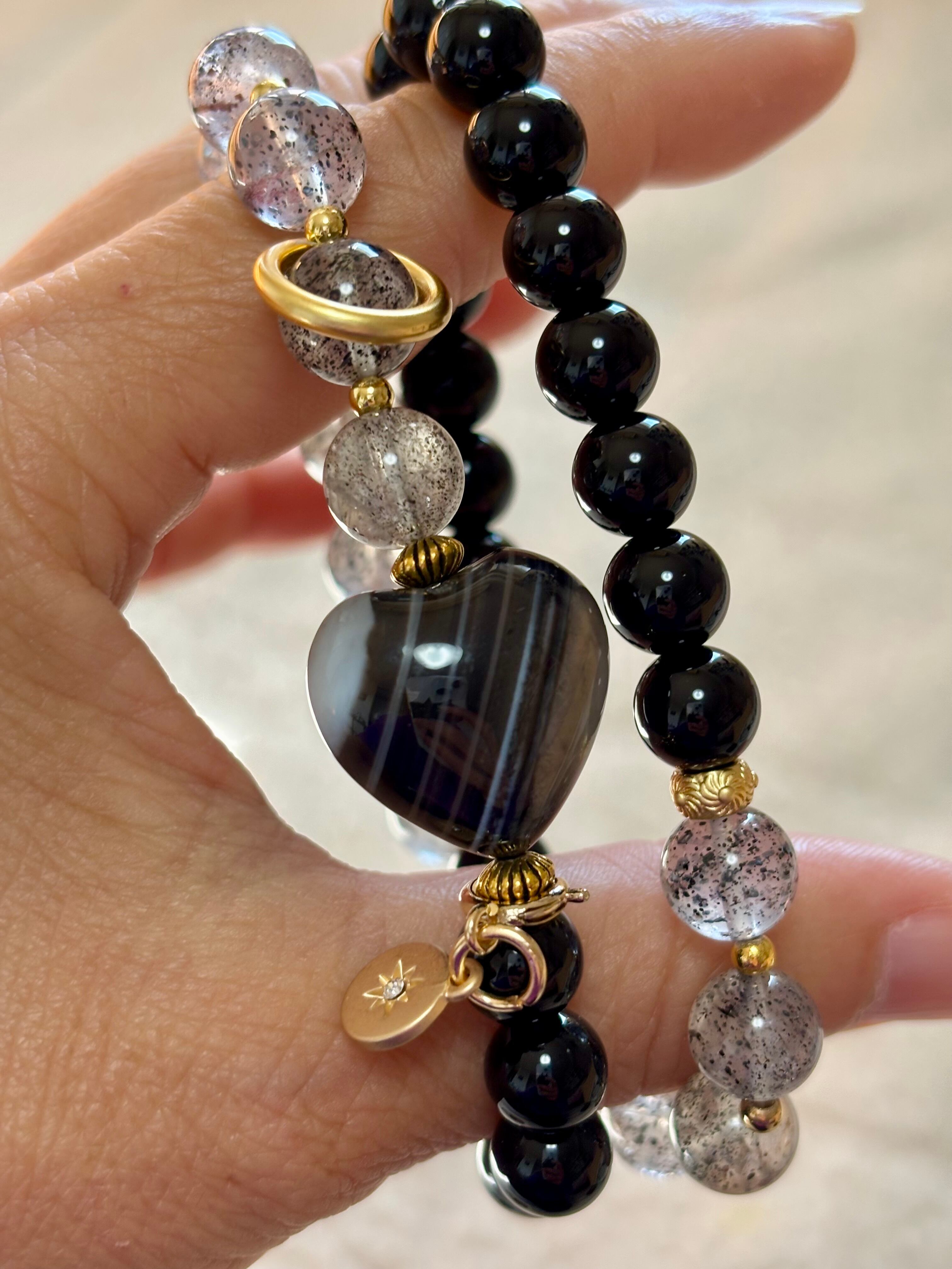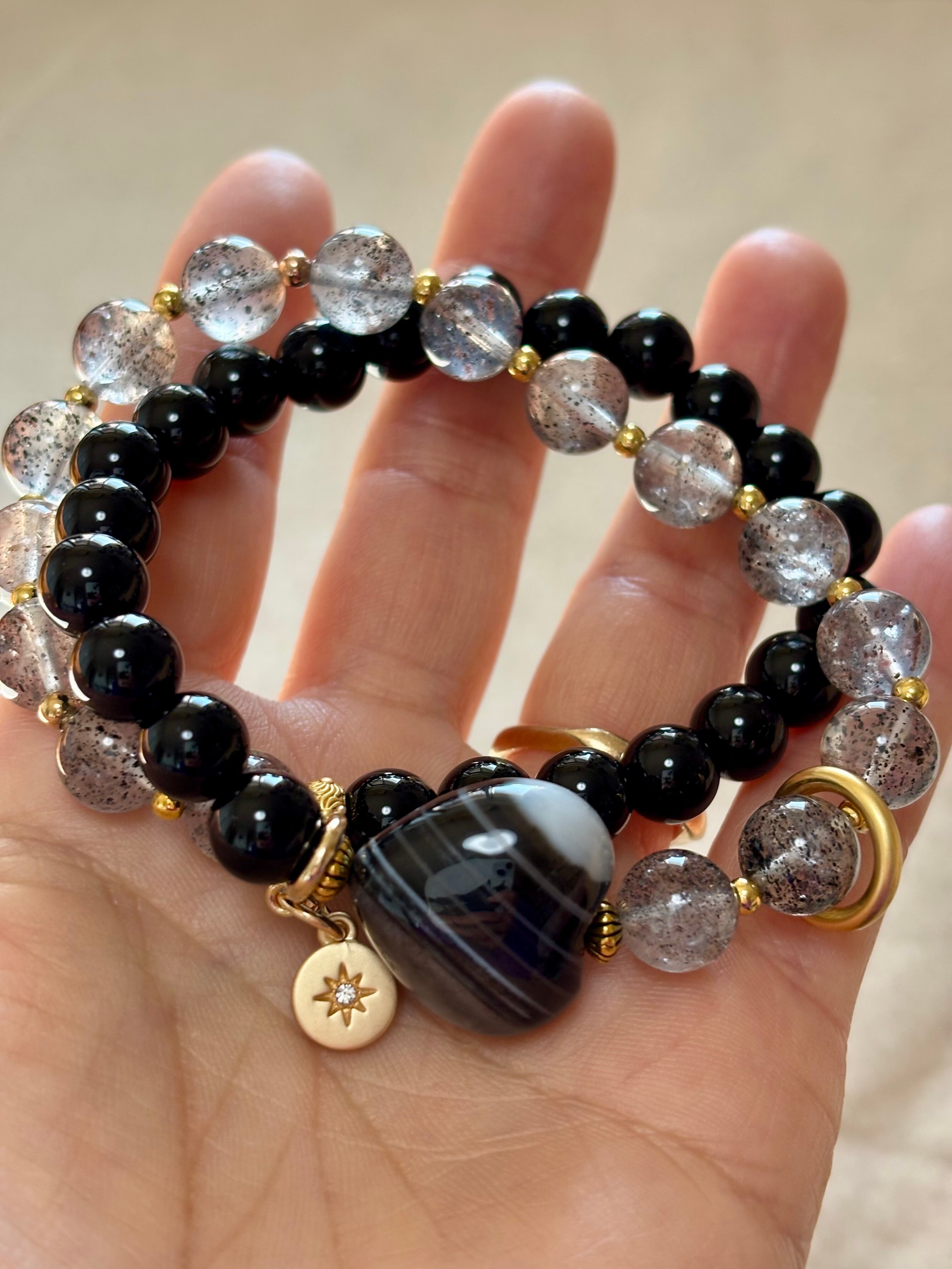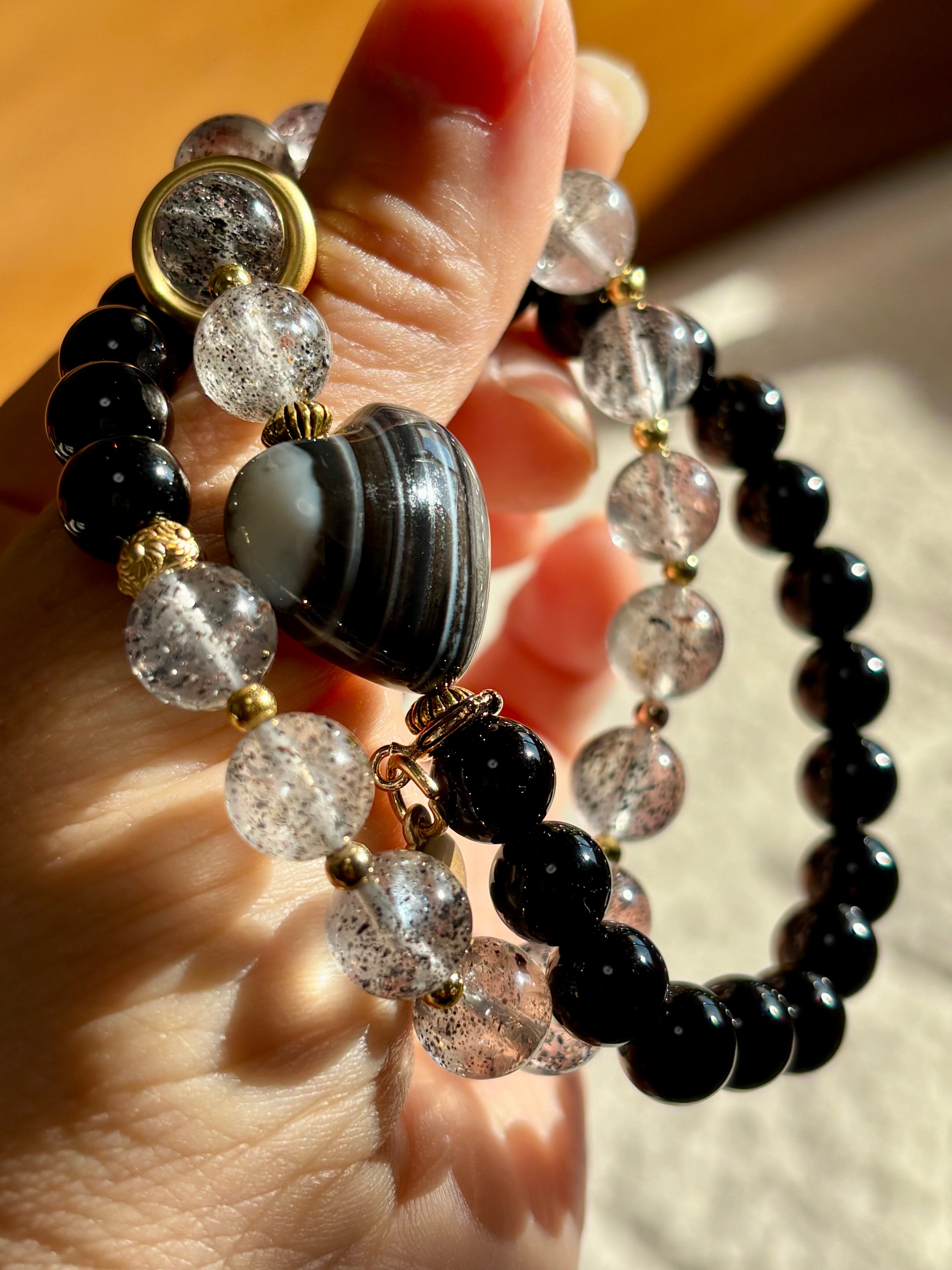 モリオンとバイオタイトインクォーツの2連ブレスレット。
