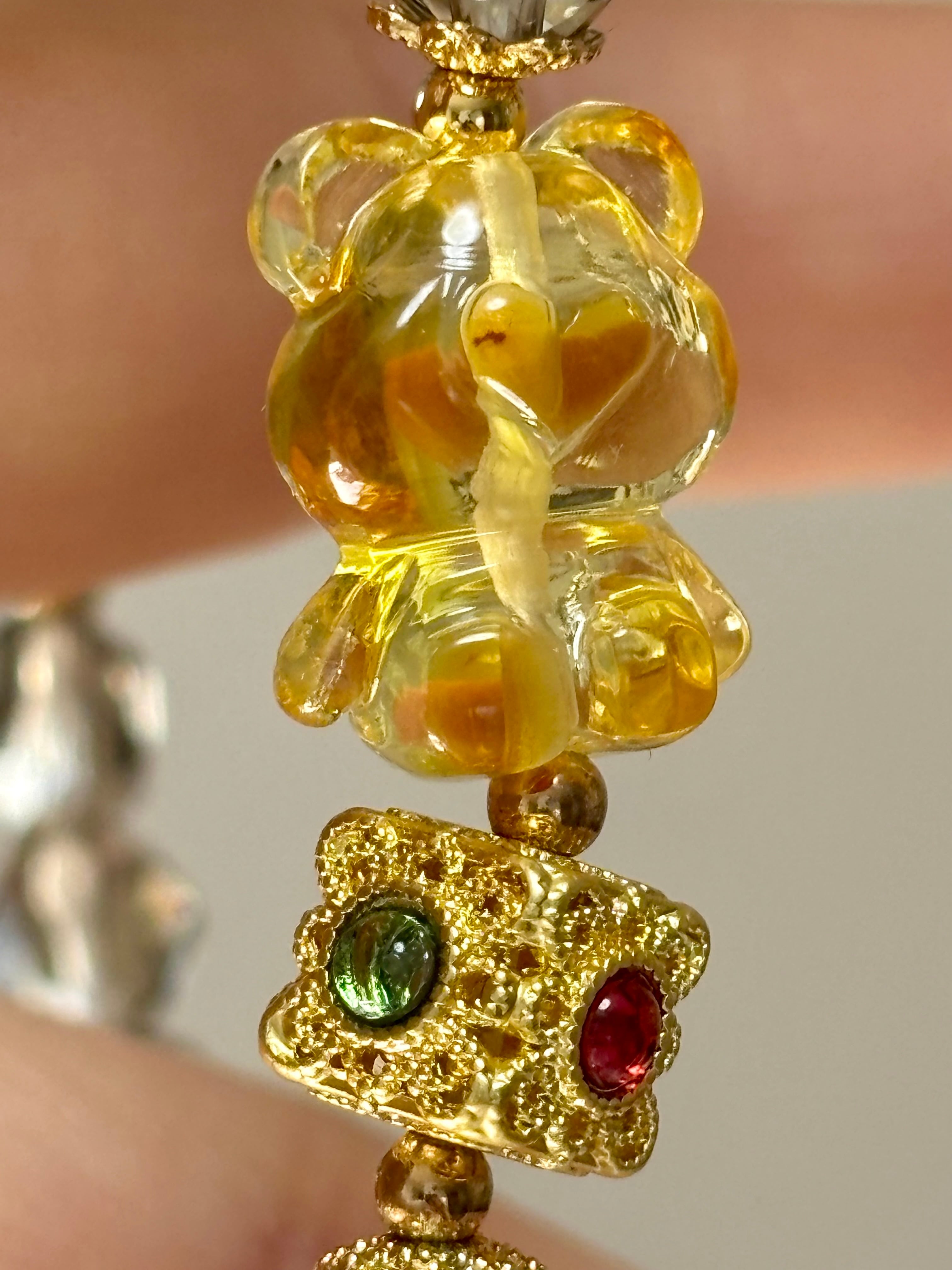 綺麗なアンバークマさんと、ライトなスモーキークォーツの2連ブレスレット。